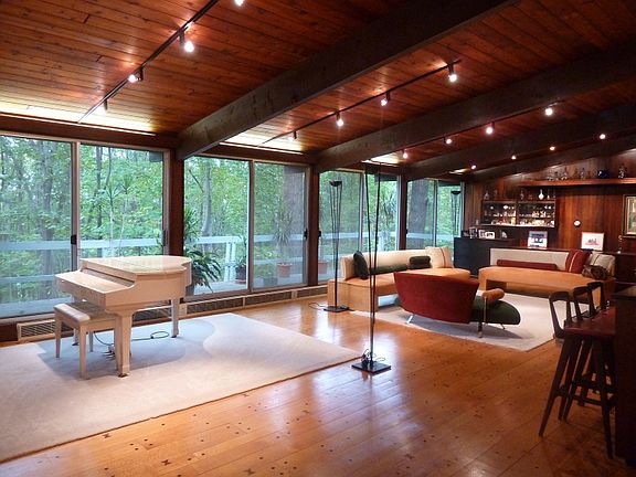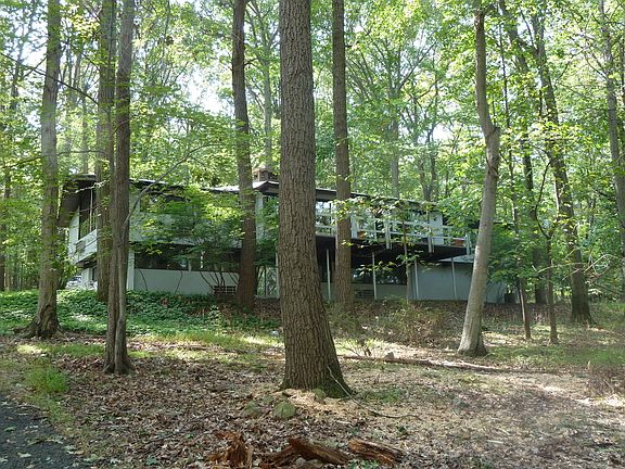 A private, wooded setting complements this easy-to-live-in Deck House with walk-out lower level BRs and living area. Two fireplaces, open floor plan, peaked ceilings, wood floors.Offered 'as is'.