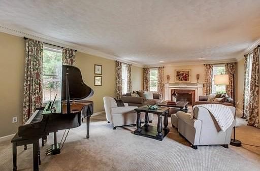 - Liv Dscrp: Flooring - Wall To Wall Carpet, Fireplace, Crown Molding
