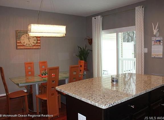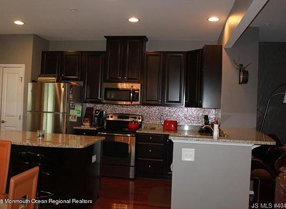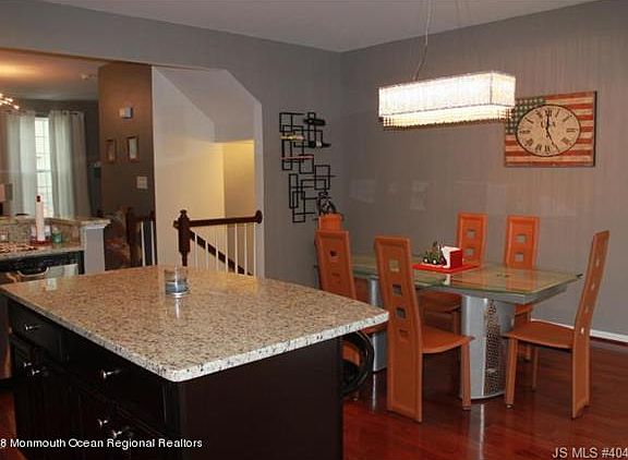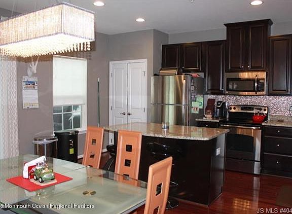 Stunning 3 story Townhome! This beautifully appointed home offers it all: Master bedroom features a Tray ceiling with Swarovski chandelier, master bath with large master closet, 2 additional bedrooms.The 2nd floor features a stunning kitchen with espresso cabinets, granite countertops, stainless steel appliances, tile backsplash, large pantry, island and breakfast bar. Relax in the inviting den, open to the kitchen. The lower level features a spacious family room-perfect for guests, room for your treadmill/elliptical. Many upgrades are included with this home: recessed lighting, custom chandeliers, light fixtures, and cherry hardwood flooring and balcony off the kitchen. Fantastic location for commuting-only 1.5 miles from Garden State Parkway ! Call today!