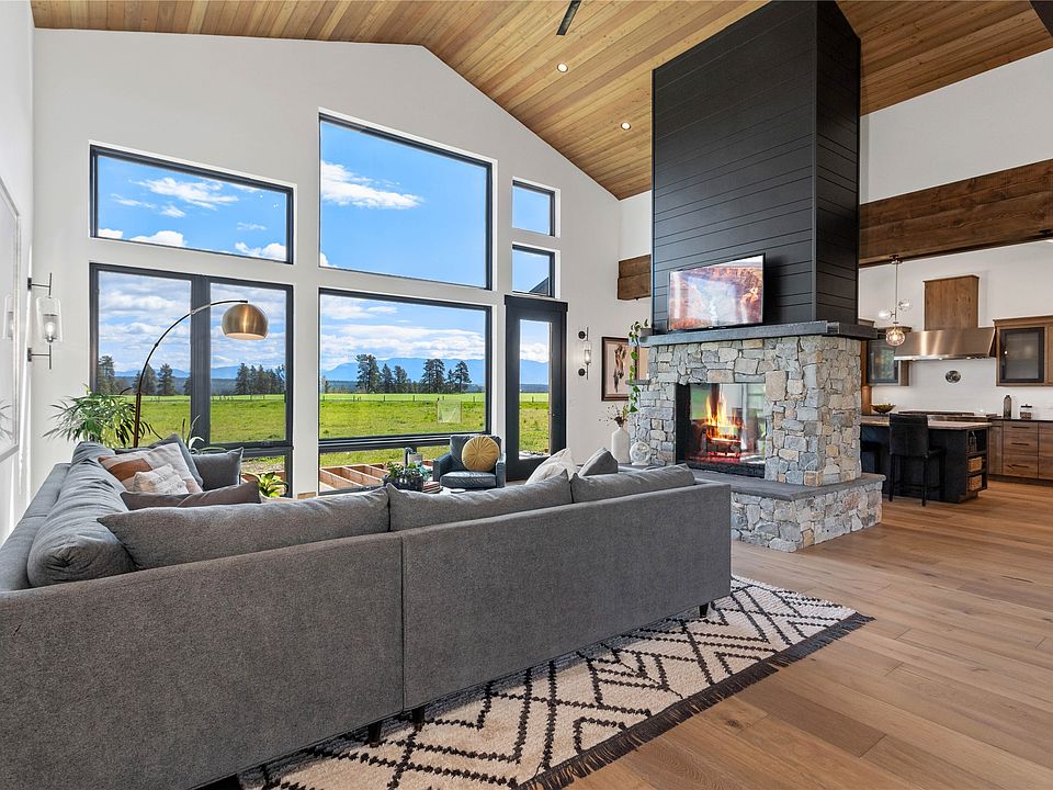 Spectacular views in every direction with a direct view of Whitefish Mountain Ski Resort from the massive living room windows. This mountain modern home has just over 3,800 square feet of living space, 4 bedrooms, 4 bathrooms, and sits on 10 spectacular acres. Located just south of Whitefish and minutes to Kuhns Wildlife Management Area, great for hiking and trail riding, so bring your horses as there are two fenced pastures already in place. The interior of the home has an open concept floorplan with a gourmet kitchen and a two-way stone and metal fireplace that divides the kitchen and great room. You'll love the metal beams, high ceilings, gourmet kitchen, and much more! Enjoy life in the country with the convenience and proximity to all the Flathead Valley's amenities. The list price has been discounted to reflect the intended work Buyers will put into the property to finish the exterior and make it their own. Call Amy Stevens at 406.249.6496 or your real estate professional.