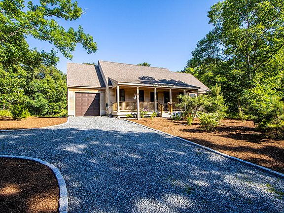 Enjoy the ease of one-floor living in this lovely 2BR, 2.5 bath ranch home with a Farmers Porch and attached one-car garage Built in 2015, the home features an open, spacious kitchen, dining, living area, perfect for modern living. The relatively maintenance-free exterior boasts all cedar siding and trim, ensuring lasting beauty and durability.The Farmers Porch offers a welcoming entrance and the peaceful backyard with a patio provides the perfect space for entertaining and relaxing. Situated on a .80 Acre lot abutting conservation land, the property provides privacy and a natural setting. The existing 3BR septic system may allow for an additional bedroom. The leased solar panels provide ample electricity for all your energy needs and the back-up generator will take care of you in an emergency. It is an easy drive to ocean and pond beaches by way of the back roads. The home comes furnished, minus personal items, making it move-in ready.. The Seller would like to close around the end of September.