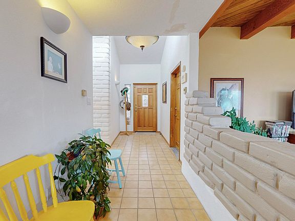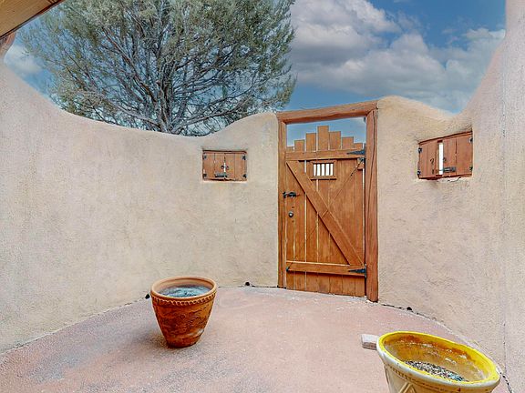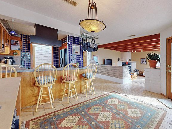 A Southwestern Oasis Awaits in PlacitasThis enchanting adobe-style residence, nestled on 1.38 acres of pristine homestead, offers a harmonious blend of rustic charm and modern comfort. A captivating courtyard entrance beckons you into this idyllic retreat, where exposed wooden beams lend a touch of rustic elegance to the open-concept living spaces.The heart of the home boasts a beautifully appointed kitchen, adorned with exquisite tile work and equipped with all appliances. Cozy up by the warmth of two inviting Kiva fireplaces - one gas and one wood-burning - perfect for enjoying cool evenings.