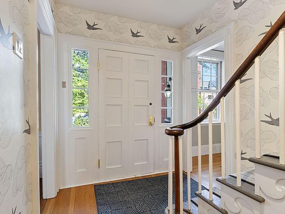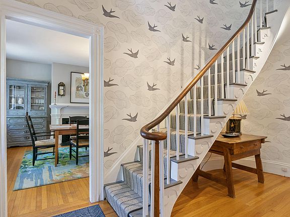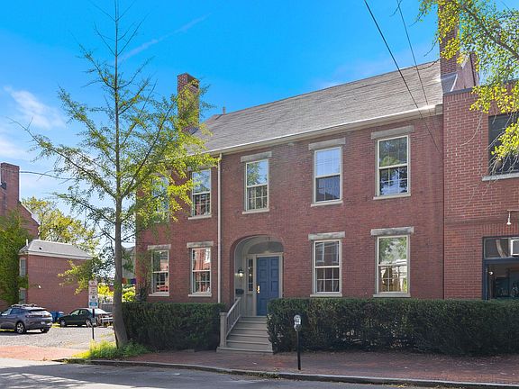 Welcome to the John How House, said to be the only single family home adjacent to the Old Port. This fabulous brick home is overflowing with style and charm including original interior shutters and several fireplaces. The rare private fenced in yard is just the perfect city space with mature plantings including a wonderful Magnolia tree. The kitchen has a bold brick fireplace with a gas stove insert, stone counter tops, tons of cabinetry and wood beamed ceiling. The spacious dining room includes a built-in cabinet and flows beautifully into the kitchen. The double living room has two fireplaces and gorgeous wood floors. The powder room is close by. The second floor offers 4 rooms and a full bath, currently used as three bedrooms and an office. There is plenty of living space here. But wait until you reach the third floor. You won't want to leave it! This light filled sprawling primary suite offers soaring beamed ceilings, window seats, built ins, and a gas fireplace. The primary bath has water views, and the large bedroom has two closets and another window seat to relax on.