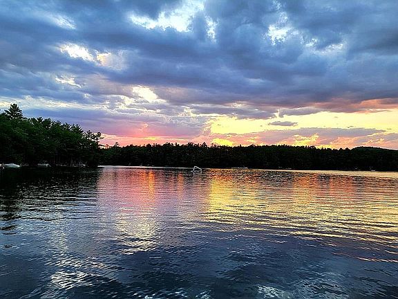 Sandy walk-in beach on Raymond Pond. 100' waterfront with beautiful views. Raymond Pond has no public boat access, so adds to privacy for you. Enjoy swimming and boating. New windows & doors, furniture, bedding, dishes, tools, lawn furniture, boats included in price. Everything stays with exception of a few personal items.