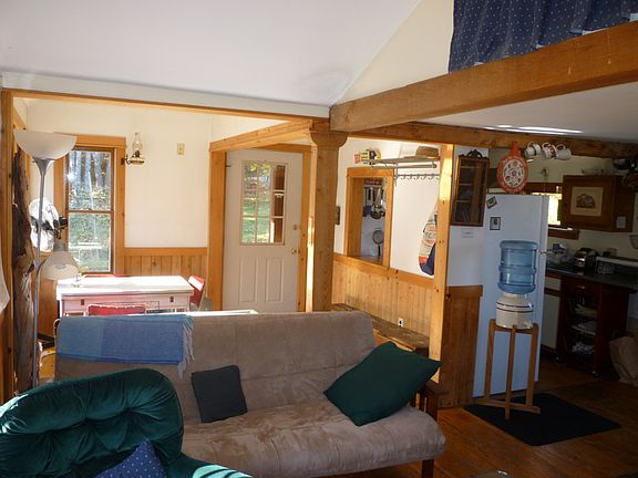 This lovely cottage, a naturalist's delight, is suitable for either year round living or as a vacation home. Just up the hill from Morgan Bay and the Carter Nature Preserve, it is 40 minutes from Acadia National Park. Sitting on 1.3 acres of land, it has 2 floors, 20x20 each with a large, sunny deck attached. On the lower floor, there are 2 small bedrooms - one with built in bunk beds, and the other, a double bed. There are closets in each room. The bathroom is also on that floor with a tub/shower combination, sink, and toilet. Washing machine is in the hallway. Upstairs is open with kitchen, dining, and living area. Deck is off the living room section. Linoleum flooring in the kitchen and pine floor in living/dining space. Heated with a gas heater downstairs and wood heat upstairs. Comes either furnished, or unfurnished, as you would desire. Additional property info: http://www.forsalebyowner.com/listing/2-bed-Log-Cabin-Home-for-sale-by-owner-PO-Box-40-04629/24032681?provider_id=28079