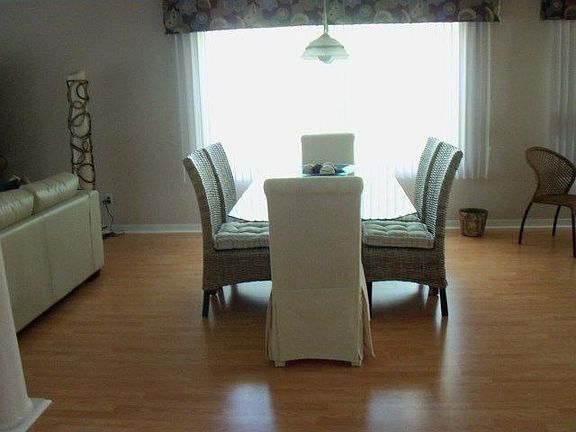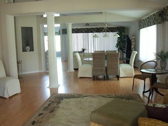 Beautiful pool home located on a corner lot and within steps to the ocean. Block construction built in 2003. Beautifully decorated and furniture is negotiable. Brand new A/C unit just installed in 2013. 3BR/2BA with cathedral ceilings and spacious open floor plan. Living room plus family room, dining room, island kitchen with breakfast nook and granite counter tops plus built-in desk. Walk directly outdoors to the pool/spa from the master suite. Pool area is completely screened in. Master bath has double vanities, walk-in shower and garden tub. 2 bedrooms have walk-in closets. Laminate flooring and ceramic tile throughout except carpeting in bedrooms. Inside laundry room and attached 2-car garage. You will love the home and the location. THIS IS A MUST SEE HOME!