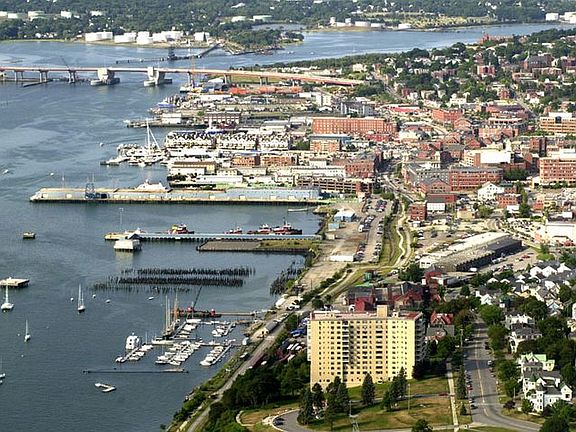 Amazing light and space in this brick building condo flanked by water views on both sides. 2-bedrooms / 3-baths, spacious deck,First floor office/den with private bath. The Old Port outside your door