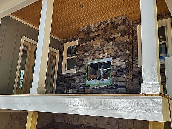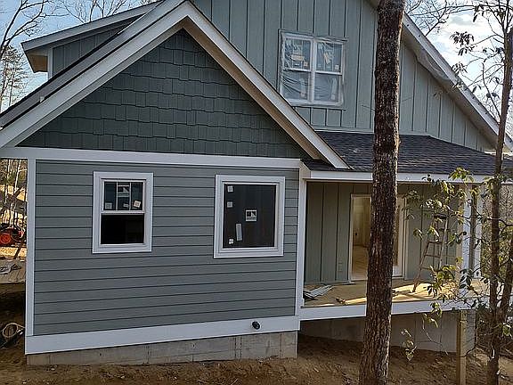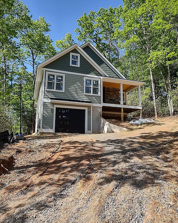 New craftsman style home on wooded lot with some views being finished in June. Over sized garage with large workshop and two large rooms for offices, game room, etc. On ground floor. Main level has 400 sq.ft. master suite with spacious walk-in closet. Double doors take you out to a 6X20 covered porch. The master bath has the perfect sculptured soaking tub and walk-in shower. Open kitchen and living area with fireplace opens out to covered front porch with rock fireplace. Also on main level is a half bath and laundry room with side deck. Second floor has two large bedrooms with each having it's own bathroom and showers. Large living area separates bedrooms. Plenty of storage and situated in a gated community near Etowah Golf Course.