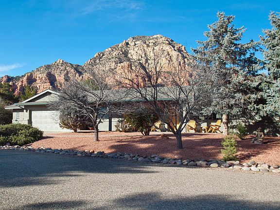 This home is beautifully updated from end to end and renovated to create a welcoming and luxurious feeling throughout. As you enter you feel the warmth of this home, and the big open views of Thunder Mountain and wonderful yard make for ideal indoor/outdoor living in the heart of west Sedona. The layout is open and yet cozy, with a split bedroom floor plan and an ideal flow - this is not your ordinary ranch! The Kitchen is fully renovated, with custom cabinets, granite counters and stainless steel appliances, a breakfast bar, and great views of Thunder Mountain. All the baths have also been fully updated and are beautifully detailed. The house has tile and sustainable flooring throughout, and a fully-owned solar electric system for added efficiency and comfort.
