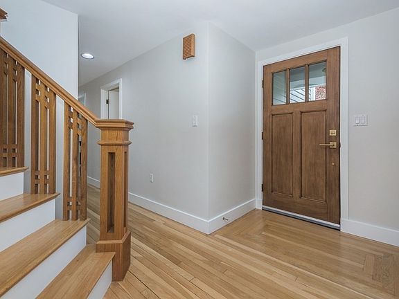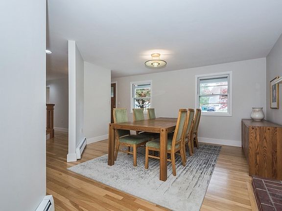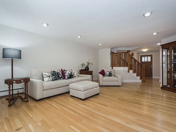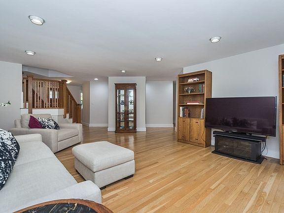 Modern design & well maintained 5 bedroom home located in sought after neighborhood abutting conservation land. Quality craftmanship & design w/hardwood floors throughout. Spacious kitchen w/cooktop island, ss appliances, Thermador double ovens, custom cabinets w/wine rack, dining area, vaulted ceiling w/skylight & access to landscaped patio area. Dining room w/fireplace. Large family room w/recessed lights & picture window w/views of backyard. First floor has 3 bedrooms w/hardwood floors & closets. Remodeled first floor full bathroom w/dual sinks. Mudroom w/storage & remodeled half bathroom. Second floor w/tastefully designed master suite includes custom walk-in closet, cathedral ceiling, hardwood floors & skylights. Inviting master bathroom w/dual sinks, vanity, shower, & skylights. Additional bedroom on 2nd floor w/vaulted ceiling & French doors, plus roughed plumbed bathroom. Attached two car garage. Central Air. Solar Panels. Beautiful perennial gardens on level landscaped lot.