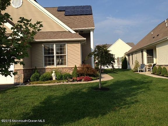 Prestigious Cedar Village Active Adult Community, Danbury Model with extended sunroom and oozing personality. Two bedrooms plus loft & bonus room, 2.5 baths. Chef's kitchen with 42 inch cabinets,slide out drawers and granite counters, and cozy breakfast area. Each room in this home has its own unique quality enhanced by designer touches, places this property in a league of its own-simply stunning! Upgraded paver patio & professional landscaping creates privacy for your BBQ or cocktail! Solar Panels allow for minimal electric bill. The 1st floor has library/bedroom. This Cedar Village home is more than just a place to live, it is a lifestyle with something for everyone!