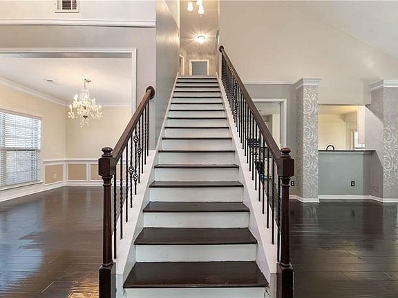 Come home to The Registry! This move in ready three sided brick home features fresh paint and flooring, five bedrooms, three full baths, a two car side entry garage, cathedral ceilings and so much more! The beautifully updated kitchen with island, granite counters and all new stainless steel appliances has open views of the family room. All the living spaces on the main level feature wide plank wood floors. An extra large primary bedroom with sitting area, double closets and bath with double vanities and separate tub/shower are on main floor along with a guest bedroom and full bath. Upstairs offers three large guest rooms and a full bath. Outside, you'll find a great privacy fenced backyard, oversized screened porch, custom splash pool, swing, and outbuilding for storage! This home has every upgrade you could want. Don't miss your chance to see it today! ASSUMABLE VA LOAN WITH LOW RATE! Call Brad For More Info!