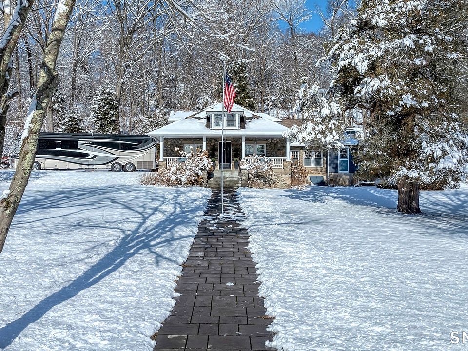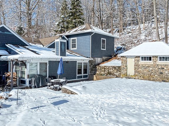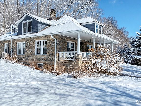 Richly appointed & exquisitely restored, this extended home unites the marriage of two century dwellings! Architectural detail boasts character from the early century with sensible amenities & additions completed between 2007 and 2009. Main level entry welcomes an expansive family & dining room complimented with coffered ceilings & built-ins for unforgettable gatherings. The Primary bedroom suite offers a full bath w/new double head shower and glass enclosure, double sink vanity and soapstone top. The remodeled kitchen is the true centerpiece delivering terracotta floors, high-end appliances, upscale cabinetry, granite tops, wood block island and butler pantry. The well-crafted interior breezeway bridges the architectural eras with a cohesive flow. Living room designed with a thoughtful display of reclaimed hand-hewn wood, custom pulley system revealing flatscreen hookup above fireplace & double barn doors to media room. Enjoy the compact design of a wood crafted spiral staircase to an office retreat with access to private exterior patio. The guest bathroom, back door utility entryway, laundry closet & access to the two-car garage complete this desirable level. Upper-level pieces together two generous sized bedrooms, laminate flooring & a full bath with tub/shower. Hallway walk-in and linen closets, office area and built-in cabinets are eye-catching details that highlight the upstairs. Exterior with 1.41 acres, front covered porch, two outbuildings & new slate front walkway! List of updates: Cast Iron hot water heater (2022), Recirculating pump for hot water, French and curtain drains (2019, Thermo-Pane windows (2020), Basement windows (2020), Bilco door (2020), Exterior painted (2020), Interior painted (2020 & 2026), Storm doors (2020), garage doors, gray water pump up system (2021), Upper-level office built-ins (2021), Primary bedroom and guest bath toilets replaced, Primary full bath glass surround and shower door (2019), shower flooring (2025), soap stone top (2020), reglazed upper level tub (2026) and remodeled kitchen. These major mechanical and improvements provide peace of mind, making this a truly special home with warmth and craftmanship!