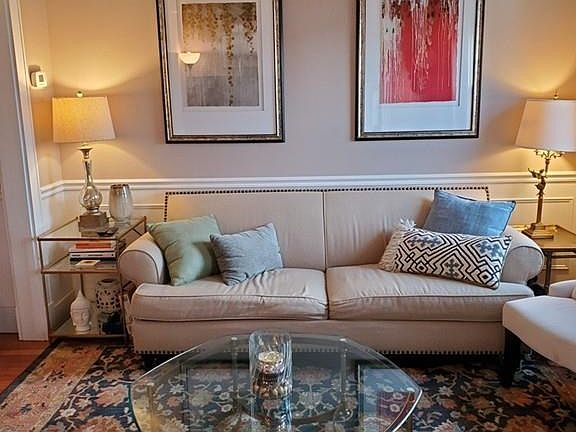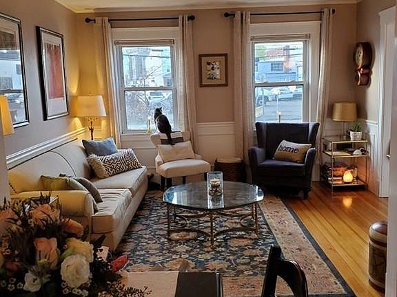 Beautiful and spacious 2 bedroom 1 bath townhouse unit available in downtown Wakefield beginning late May. Close to stores and restaurants, the train, and the lake with a walk score of 89. Great sunlight, private porch and entrance, and off-street parking make this unit a gem. In-unit laundry and central AC. Two level living with additional full basement and attic for excellent storage. High ceilings, hardwood floors, and detailed molding create a very welcoming space.