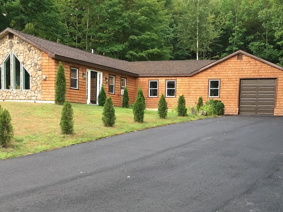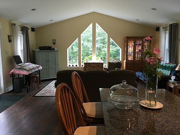Great room Living Dining Kitchen with cathedral ceiling, custom window, new cupboards and appliances, Two bedrooms and one bath. Screen porch and oversized one car garage. New paved driveway. Stone Flower Beds. Vegetable Garden.