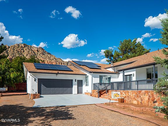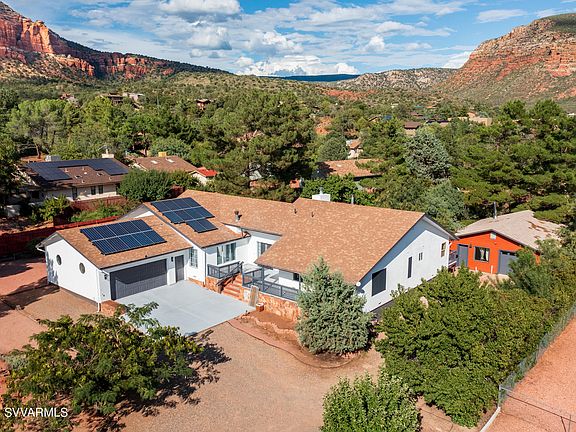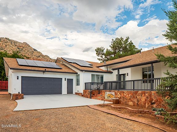 Beautifully situated on nearly 1/2 acre in the private & peaceful neighborhood of Pine Valley in Sedona. This area nestles up to a beautiful red rock mountain range! For those that seek the outdoors there are miles of hiking & biking trails This nearly 2,800 sq ft home has been completely remodeled and is ready for new owners. Step inside to find a tastefully updated sprawling home with all the modern conveniences. Save on your electric costs with paid solar that sits on top of a new roof! In addition to an oversized attached 2 car garage there's a detached garage and workshop. This home is sure to WOW you. Currently being used as a short term rental; call for availability. Seller can provide a furniture package if desired.