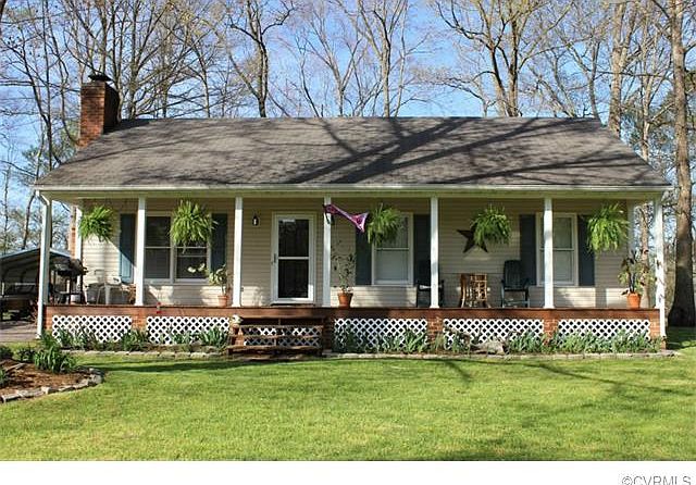 Charming 3 bed, 2 bath, well maintained vinyl rancher with full country porch. Has brick gas fireplace. Neat as pin!! 2 detached storage sheds with full electric. This home is in a river access community and boasts beautiful river views and sunrises of Mataponi River. Walking distance from community beach, has public boat landing within a half of mile of home. This is a must to see!!