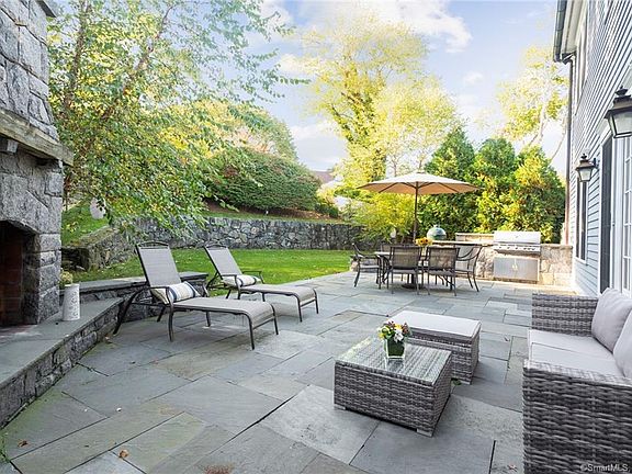 Chic & sleek with traditional feel, this immaculate 5 bedroom colonial is perfectly located in the heart of Riverside. Custom mill work, raised panels and crown moldings with built-ins galore An inviting two story foyer, elegant hardwood floors & the transitional open floor plan enhance the airy, relaxed feel of this perfect home. Late afternoon or early evenings, curl up w/a book on the front porch. The living room flows into a formal dining room with custom cabinetry. Amazing large dream Chef's kitchen with exquisite details, gas stove & double S/S ovens along with built in wine rack. The bright family room enhanced w/a wood-burning fireplace surrounded by custom shelving as it flows seamlessly outdoors to a large generous flagstone terrace. Entertain "al fresco" with an outdoor stone fireplace, state-of-the-art built-in barbecue area, perfect for soirees with family and friends, or for that delicious nosh and glass of vino Upper level has large Master, walk-in closet & enormous Master bath w/separate shower and whirlpool. There are 3 generous bedrooms & 2 full baths. The finished lower level completes it all Great playroom/game room with high ceilings, custom built-ins, and a fifth bedroom w/full bath & exercise area. Copper gutters, mature landscaping & outdoor speakers along with loads of storage and Generator. Convenience, custom details throughout-You can have it all