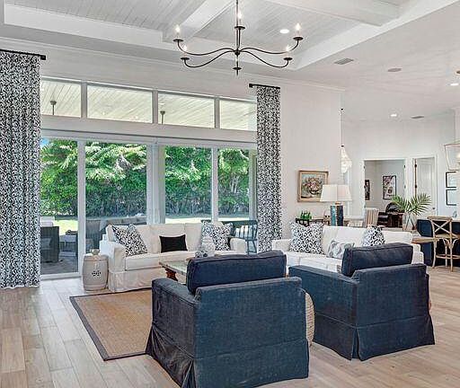Incredible, like-new and looks like a model is this amazingly designed, quality crafted beach-side home. Rare half-acre cul-de-dac lot within walking distance of the Ocean. This was a second home for the owners and lived in less than 60 days since built. The open concept, great room pocket impact resistant SGDs to porch w/FP, wood ceilings and fenced yard. There's a gourmet kitchen w/ huge island, handsome cabinetry, and quartz tops, tons of storage, amazing pantry, mudroom, and laundry. The owner's suite is like a fine hotel w/ a spa-bath and walk-in closet to die for. The BRs are more than ample, office and game/media room each have closets that could double as a 4th or 5th BR for guests. Wait 'til you see circle-drive, oversized 4-car gar w/ space for boat/RV plus AC'ed storage or shop