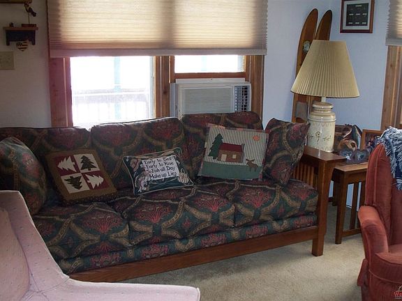 Most furnishings stay!! Except some personal items in the cabin , 24 foot pontoon, dock with lift and jet ski lift all stay. Lots of decking. Covered deck at top for cookouts. Awesome view! Short walk to the dock. Lowe pontoon stays!