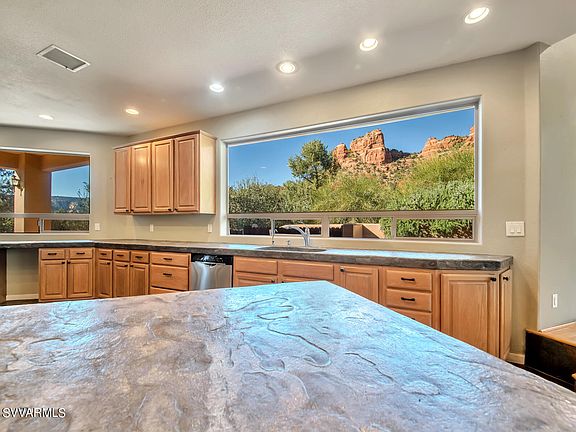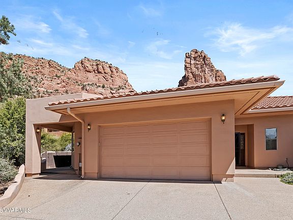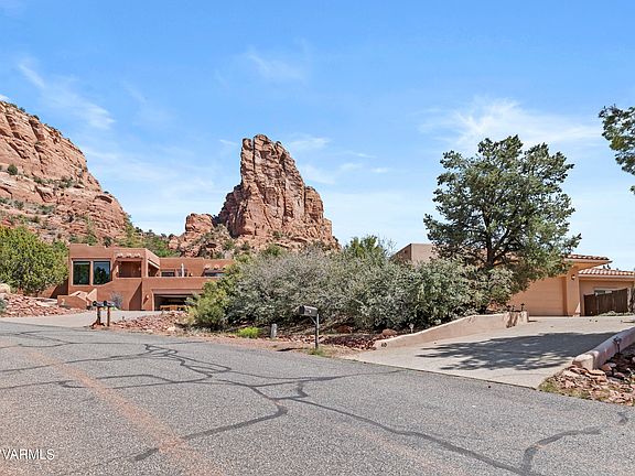 VIEWS! VIEWS! VIEWS! Seemingly endless red rock views from every window of the nearby Castle Rock formation. The adjacent Coconino National Forest and cul de sac provide an ultra private setting. Located within the coveted Red Rock Cove subdivision, less than 1.5 miles from Oak Creek Country Club, and less than 8 miles from Uptown Sedona. Featuring a modern open floorplan, highlighted by a large great room with floor to ceiling windows. The exterior is comprised of multiple sitting/entertaining spaces. The rear flagstone patio is a great place to take in additional views of the red rocks and local wildlife. And sliding glass doors from both the primary and guest bedroom lead to a side deck. Schedule your showing today! Furnishings available on a separate bill of sale.