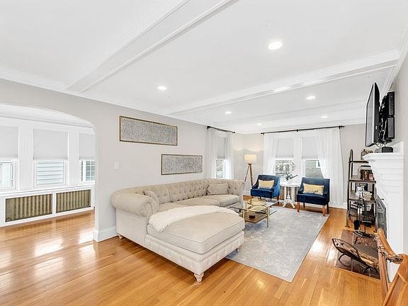 Classic New England Central Entrance Colonial with modern touches in prime Bellevue Hill location! Front entry foyer leads to a front to back living room with fireplace that has adjacent office/sun room area. Dining room has custom built-ins and wainscoting detail. Kitchen with custom cabinetry, farmhouse style deep sink, multi-burner gas range, and thoughtful design. There is access to large deck and half bathroom on this level. The primary bedroom has a large walk-in closet, custom tiled modern bath, and access to a deck. This level also has two additional bedrooms serviced by another full bath. The top floor has an additional sleeping area and lounge space with LED illuminated fireplace. Great play space in the yard, garage parking with storage area, additional finished room in walk-out basement, and so much more. Lots of nice designer touches and modern updates. Can't be beat location a short distance to commuter rail and all the area has to offer.