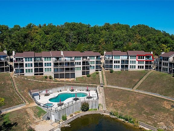 Welcome to your cozy lake getaway! This charming top-floor condo has been lovingly cared for and offers excellent rental history, making it a perfect investment or your own personal private retreat. Step inside & enjoy the open floor plan with vaulted ceilings, beautiful stone fireplace & seamless flow from kitchen to living area. The large lakeside deck is ideal for relaxing since its corner unit plus has good water views. The front deck is great spot to enjoy morning coffee or socialize with neighbors. The lakefront master suite features a private bath while a second guest bedroom has full bath to ensure comfort for family/ friends. This condo is being sold fully furnished & includes a 12x28 boat slip- ready for you to enjoy from day one! Located just steps from 1 of the 2 community pools. Or use the concrete boardwalk that lines the complex's green space to the scenic lakeside pool & hot tub overlooking the action packed 10 mile marker! Enjoy the dog friendly areas, playground for kiddos, tennis courts, & more. This condo checks all the boxes & is located near your favorite LOZ hot spots like Shady Gators & Camden on the Lake & all that Horseshoe Bend area has to offer!