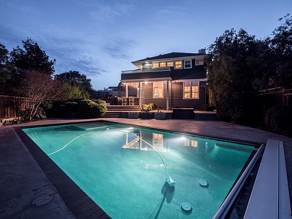The epitome of luxury, this breathtaking 3,245 sq ft residence built in 2011 is nestled in the prestigious Upper Westside of Santa Cruz. Spanning a tastefully landscaped 14,810 sq ft lot, this quiet cul-de-sac home offers the peace and serenity of a private sanctuary. The impressive great room with coffered ceilings encompasses the gourmet kitchen, the dining room, and living room. A fireplace plus two built-in workstations make it ideal for entertaining, relaxing, and working. Each of the five bedrooms has spacious walk-in closets with the primary bedroom offering two closets, en suite bath, and expansive views from its own spacious balcony. Another bedroom is also en suite. Extensive patios, a hot tub, and a sparkling swimming pool grace the landscaped yard. The built-in outdoor entertaining area with sink opens directly into the kitchen through two large sliding windows for fun and convenient inside-outside gatherings. The bonus room just off the front entry door offers many possibilities for home office, guest room, or exercise room. Photovoltaic solar system and radiant heat flooring attest to this home's commitment to comfort and sustainability. Don't miss a rare opportunity to own this gem, a masterpiece of superior design and comfort in Upper West Side Santa Cruz.