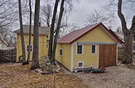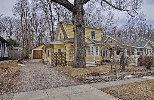 Meticulously renovated American Craftsman style home on West Side near Forest Street. Open floor plan, high ceilings, hardwood floors throughout and soft tasteful color scheme makes for warm, inviting and tasteful living. Mudroom with pellet stove leads up to bright kitchen with ample cabinets, counter space, and skylight. Built-in desk for keeping cookbooks and dreaming up your next recipe. Dining room features corner built-in china closet. First floor is completed with guest bedroom and full bath. Upper level features skylit Master Bedroom with three closets including a walk-in, full bath, third bedroom plus bonus room perfect for office, nursery, or crafts. Garage/workshop has metal roof and custom barn-style wooden doors front and rear. Yard is extra-large for neighborhood with lots of room for gardening and gatherings. Minutes to 190/290 and shopping.New roof 2010 and furnace new 2000. This home truly is a gem!