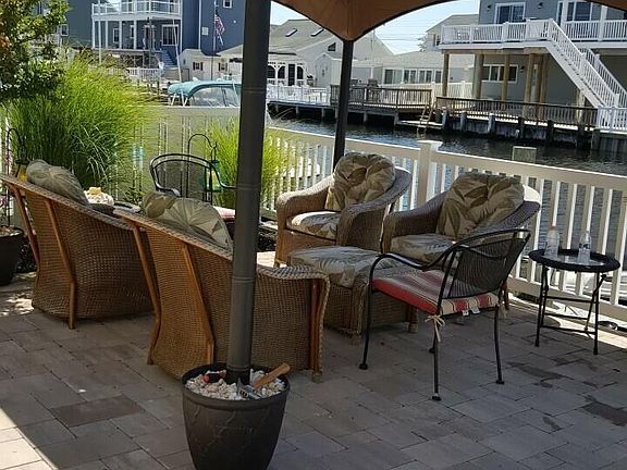 BHW- Almost 2900 SF of sun felt lagoon front living. Features: 5 Bedroom, 3 full/1 half bath. Including 2 en-suit bath/bedrooms. Two large family rooms for family entertainment. Second floor family room with wet bar. Updated kitchen, wood floors TO with carpeted bedrooms. Wonderful rear yard complete with full brick patio, pergola, gas grill, patio furniture and LG hot tub for those long summer nights. Amazing Souther-sun exposure perfect for evening entertaining waterside. Dock has water and electric. Sold fully furnished. Just minutes to Barnegat Bay by boat and just over the bridge to beautiful beaches of Long Beach Island and everything that LBI has to offer.