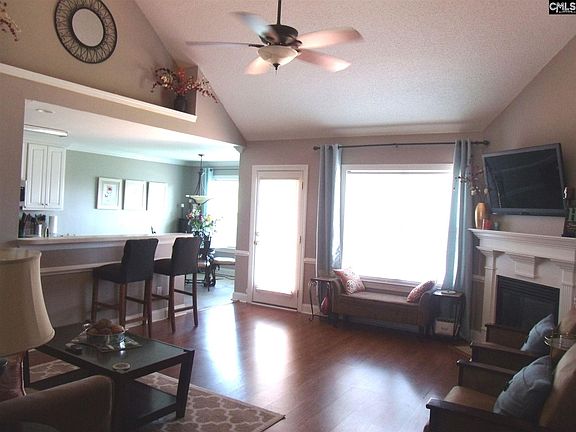 - Living Room: Fireplace, Ceilings-Cathedral, Molding, Floors-Laminate, Ceiling Fan
