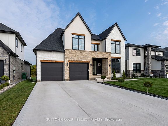 Introducing 40 Royal Crescent, in Talbotville Meadows - the top shelf of luxury real estate! This aesthetically crafted Woodfield home made zero compromises during the build; if it could be done, it was. Featuring a 4+1 bedroom, 3+1 bathroom configuration, spanning more than 3600sq/ft of finished living, and located on a rare 200-foot deep ravine lot - this home is perfect for a growing family that desires more space inside and out. The draw begins at the curb - manicured landscaping wraps around the concrete driveway, and a facade complete with accent lighting that casts a spotlight on this home after dark. The cedar accents perfectly compliment the black windows that contrast the white brick. Upon entering, the main-floor opens to a large living space, surrounded by floor-to-ceiling windows that flood the space with natural light and have you gazing out over the endless backyard. Coffered ceiling details, 8 doors, soft arch transitions and custom built-ins render the main living space as magazine worthy. The kitchen is crowned with matching GE cafe appliances, a perfect balance of floating shelving and ample cabinet storage, paired with a walk-in pantry that directly exits to the garage for convenience. The second floor is composed of 4 large bedrooms including a brand new custom walk-in closet in the primary (2025). Floor to ceiling windows dress every room - a testament to the top tier selections made during the design. The lower level is the real cherry on top - a full secondary suite with separate entrance that welcomes multi-generational living or a mortgage helping income space. This home was sincerely built for a king & queen - and its one that you will not want to miss.