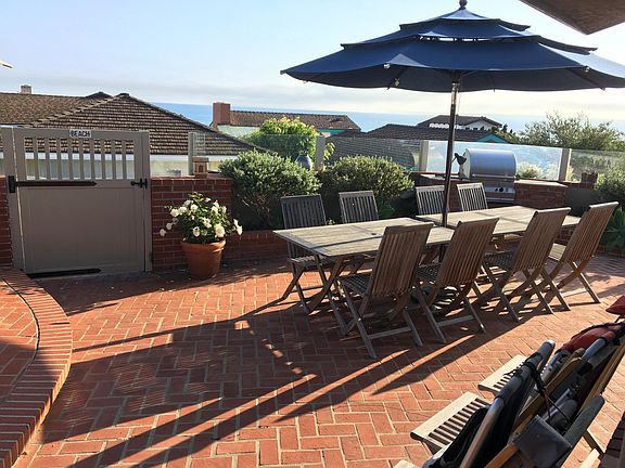 Private, gate guarded, ocean view, lower Three Arch Bay, beach house. Hear the waves. Steps to beach. Great entertaining home with large outdoor brick patio, hot tub and built in barbecue. 3 bedroom, 2 bath. Two car garage with tile floor and lots of storage + three additional parking spots on driveway. Refrigerator, washer and dryer included (tenant responsible for maintenance--if any) . Available August 15th (possibly sooner). Owner pays pool (hot tub) maintenance