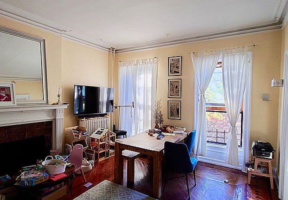 A huge 1BR + bonus rm just for you This Fort Greene 2nd Floor bright, full floor apartment has a huge bedroom measuring 13'-6" x 20'-0" that is duplicated in the living room with both boasting decorative fireplaces. There is a bedroom/office adjacent to the primary bedroom. It offers hardwood original flooring with 10'-0" high ceilings throughout and plenty of closet space with a large built-in storage in the center hall. Kitchen has stainless steel appliances with good storage cabinetry. Located just 1/2 block from Fort Greene Park. Heat and hot water included. No dogs permitted. One-month broker fee due at lease signing. Brokers: 15% co-broke.