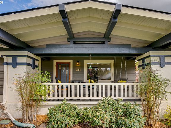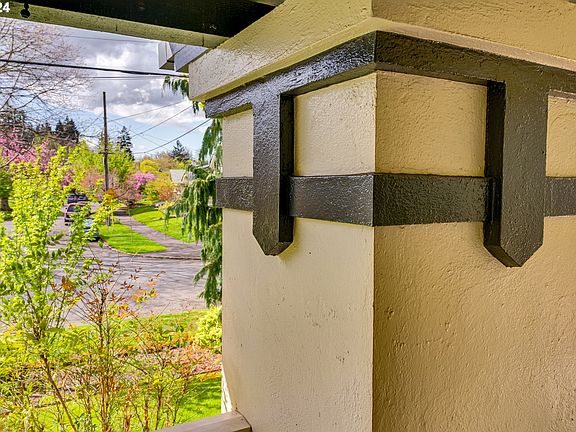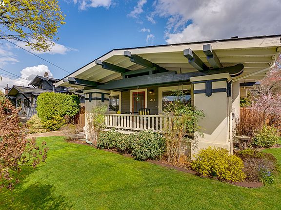 This exquisite 1916 Laurelhurst Craftsman stands as a testament to timeless Arts and Crafts quality and elegance with its sweeping roofline and welcoming front porch. A freshly painted exterior highlights its striking features and the front porch with its swing and sun shades acts as a second living room. Step through the front door and into a light-filled living space where crisp white walls and warm wood floors greet you. All the classic design elements are here, from the fireplace with its impressive mantle to crown moldings and wainscoting, and the expansive built-in hutch with glass doors. The open concept dining and living area seamlessly flow, offering the perfect setting for intimate gatherings and lively conversations. The kitchen, bathed in natural light, is a chef's delight, boasting a newer dual fuel range, ample counter space, storage, and a large skylight that illuminates the heart of the home. Adjacent to the kitchen, a mudroom provides a practical transition space, ideal for keeping shoes, coats, and backpacks organized. The main floor hosts three generously sized bedrooms and a full bathroom. Downstairs, in the fully finished basement, you'll find a spacious family room, a large full bath with a walk-in shower, and a Murphy bed for guests. A laundry room, and plenty of storage complete the lower level. Outside, discover a lush private patio, perfect for alfresco dining and entertaining plus a sunny south side garden area offering an opportunity for the green thumb. Over a century old, but modernized with thoughtful touches including automated blinds, a gas fireplace equipped with temperature control, and a new state-of-the-art heat pump system this home blends classic style with today's living. A rare find is the solid double car garage equipped with an electric car charger, along with two additional off-street parking spaces via the alley driveway. Near Laurelhurst K-8 School and iconic Laurelhurst Park and on a designated bike path! [Home Energy Score = 5. HES Report at https://rpt.greenbuildingregistry.com/hes/OR10226494]