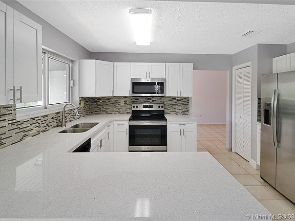 Don't miss out on this beautiful, spacious, updated property with easy access to FLA turnpike or SR 836, malls, FIU, and restaurants. Home is nestled on 7,875 s/f lot with a circular driveway and 1-car garage. This stunning home offers an open floor plan featuring four bedrooms and two bathrooms. Remodeled bathroom and updated modern kitchen with new countertops, backsplash, and stainless steel appliances! French doors lead out to a covered terrace, which overlooks the sparkling pool, making it a great space to entertain friends and family. Property has been freshly painted inside and out along with a newly installed electric gate motor. A must see to appreciate.