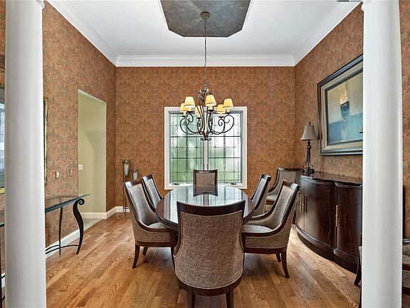 - Coffered Ceiling(s), Special Millwork, High Ceilings, Walk-In Closet(s), Bar, Entrance Foyer, Separate Dining, Central Vacuum, Breakfast Bar, Breakfast Room, Custom Cabinetry, Pantry, Solid Surface Countertop(s), Double Vanity, Lever Faucets, Separate Shower