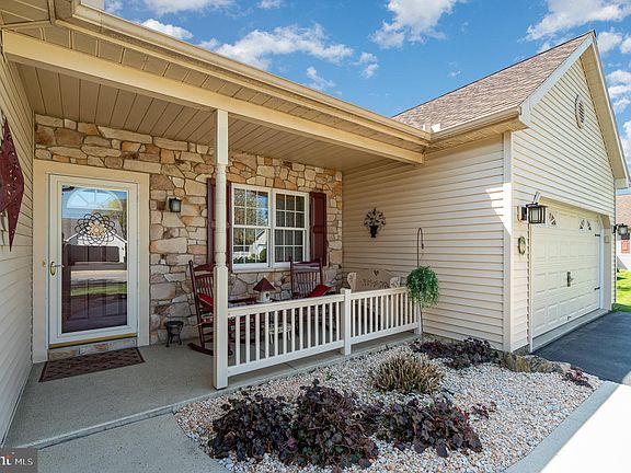 Move-in ready and brimming with upgrades, this beautiful Stratford model boasts over 2200sqft and is the perfect place to call home! Meticulous care of this home is noticeable from the moment you arrive! Pulling up you’ll see the tasteful landscaping & a combination of vinyl siding and stone exterior, a great choice for durability & aesthetics. A covered front porch is an ideal spot to relax and enjoy the outdoors. Decorative cement overlay on front walkway, porch & rear patio adding style and class to this beautiful exterior. Once inside you’ll be greeted with upgrades galore! Wide entryway with ceramic tile flooring. Formal dining room with hardwood floors-durable, easy to clean & adds a touch of elegance to the space. Tray ceiling & wainscoting add architectural interest. Dimmable lighting in the tray ceiling, and recessed lights for even another layer of sophistication. Beautiful kitchen vanilla white staggered cabinets, under cabinet lighting, recessed lighting overhead, glass featured corner cabinets, range hood, built-in oven, pantry cabinet w/pull out drawers, tile backsplash, 2 tier breakfast bar area w/pendant lighting. Sliding glass doors here so the natural light pours in. Step into the stylish great room with natural gas fireplace-provides ambiance & warmth. Dramatic ceilings soar overhead, creating a sense of openness. Head through the French doors leading to the versatile all-season room. Enjoy year-round comfort with forced heat and AC or use the electric baseboard on those crisp spring & fall days. Generous sized primary bedrm with stunning tray ceiling. Two walk-in closets w/pocket doors. Ensuite bathroom is so spacious and bright making a fantastic space to get ready for the day. Appreciate the thoughtful touches of quartz countertop, double sink, a Jacuzzi tub, walk-in shower, & ceramic tile floors. 2 additional spacious bedrooms offer ample living space. Both provide custom window treatments & wood laminate flooring. Full main bath has walk in shower, pedestal sink, ceramic tile flooring, heat lamp, linen closet, and transom window. Pocket door to laundry/mud room featuring beadboard molding, built-in cabinets, countertop space, and newer washer & dryer included. Full basement for your storage needs. Bilco doors make it easy to bring items in and out. Roughed in plumbing for future bathroom. Wait, there is more! Venture outside to your own private oasis. Here you’ll find a stunning patio nestled in a way that creates a private seating area with an awning overhead. Beyond that is a Pergola and an outdoor kitchen/grill, perfect for al fresco dining. Words can’t describe the setting this space provides. Additional features: custom blinds & cornices, central vacuum, tasteful paint, 3 solar tubes create natural light in normally darker spots(1-mudrm, 2-entryway/hallway), many lights are on dimmer switches to customize lighting preferences, 9’ ceilings throughout, pocket doors to both walk-in closets & mud rm, custom moldings throughout the home really accentuate the space (crown, chair rail, wainscoting, & beadboard), ceiling fans, cathedral/vaulted ceilings in all-season rm, bdrm 2, & great rm. 2 car attached garage has a man door access, garage door opener, and access panel in ceiling. Home has central air conditioning (new) and natural gas heat(new) & hot water with forced hot & cool air. Baseboard heat in bathroom & sunroom for added comfort and control. Living here you can also enjoy the amenities this community offers. *Community- gated entrance at Rt 422. Land lease covers usage & maintenance of common grounds & clubhouse, sewer, & trash. For countless activities & gatherings-clubhouse offers banquet hall, fitness rm, billiards, beauty salon, library, coffee shop, game rm, lake views w/fishing & canoeing, and a gazebo. Pet friendly community.* Call today to see this fantastic home that offers an abundance of space, style, and comfort, making it the perfect place to call your own!