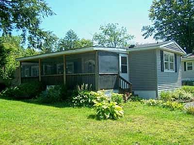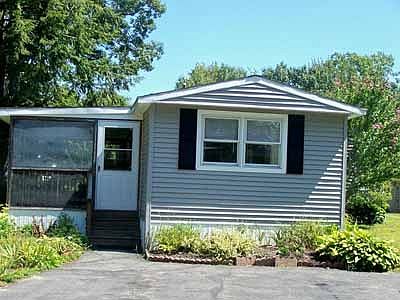Affordable living in the seacoast! Large screen or plexi glass enclosed porch 10 X 23 enters into large open concept kitchen with island, white and bright with lots of cabinet and counter space, gas log corner stove unit, large dining area. Kit/liv/din & 2 bedrooms with wood flooring. Tile full bath. Large walk in closet. HU for washer & elec dryer. Public & sewer. Well to water gardens. Forced hot air with central air conditioning. Commons has use of club house with park permission, pavilion with picnic area and gated in ground pool for use of Seabrook Village Cooperative residents. Park entrance fee is $8,500. and is returned to owner when the sell the unit. Park approval required. Fees to sign deed and application. Small dog with approval less than 25 lbs. Mature landscape. Short commute to major highways, shopping and lovely seacoast of NH. Sticker resident parking for Seabrook Beach 4+/- miles. Tons of potential to convert to 3 bedroom unit with permits and approvals from town.