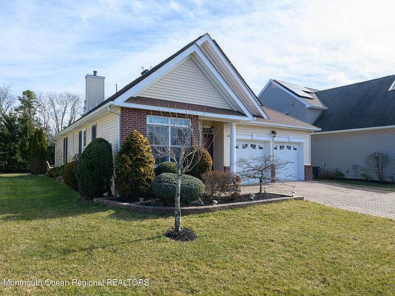 Here's your opportunity to live the care free lifestyle Cedar Village has to offer. This well-appointed Berkeley ranch model, with a sunroom, is awaiting its next owner. The bright and airy open floor plan is perfect for entertaining or for cozy nights in front of the fireplace. The sunroom offers views of the beautifully landscaped yard and paver patio, in a private setting. Paver driveway, engineered hardwood floors, granite counters, walk-in closets with organizers and decorative moldings are some of the other pleasing features. Energy efficient solar panels eliminate an electric bill. Conveniently located near major roadways, beaches, golf courses, restaurants and shopping.