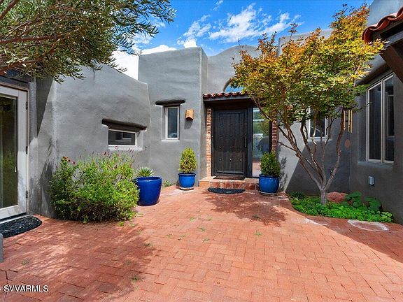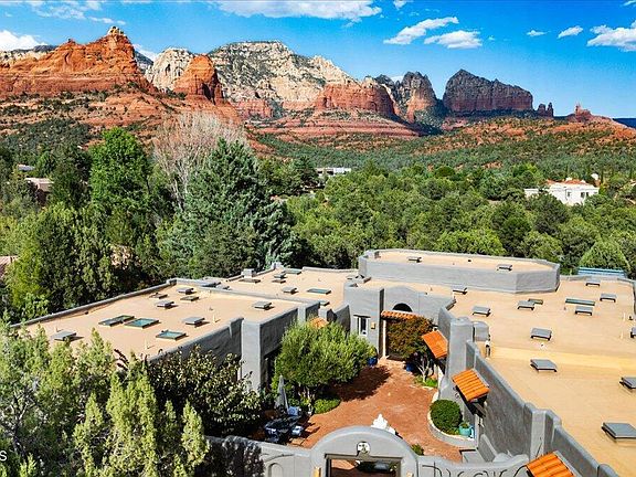 Prepare to be enthralled. Absolutely amazing home offers breathtaking views & an incredible salt water swimming pool, spa & patio outdoor living space. Sound healing in an expansive spa & negative edge swimming pool with waterfall, outdoor shower and fire features too. Custom built Hacienda style estate on nearly an acre with inviting entry courtyard, open ceilings & tasteful, modern upgrades throughout. Tucked at the end of a quiet cul de sac & resting on its own knoll; creating a feeling of forested privacy & intimacy with the dramatic, red rock views! This magical home includes five bedrooms plus an office, & guest wing including a separate entrance, kitchenette & a private SW hot tub patio too. This enchanting property and home is one of the finest in Sedona and is a must see.