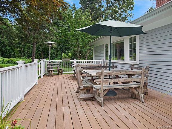 Nestled at the end of a cul-de-sac, this wonderful colonial sits on more than 2 acres of beautiful property. Spanning more than 4,000 sq. ft. this sun-drenched home is perfect for entertaining both indoors and outside on the oversized Trex deck. Newly renovated kitchen featuring Wolf and Sub-Zero appliances. The main entry leads to a formal living room and large family room with vaulted ceiling and fireplace. The sunroom adjoins the dining room, the perfect place to relax after dinner. Upstairs you will find an office with gleaming hardwood floors and five bedrooms, including a large Primary Suite with brand new bathroom. Wonderful walking trail winds around the perimeter of the property. Convenient location short drive to town and Merritt Parkway.