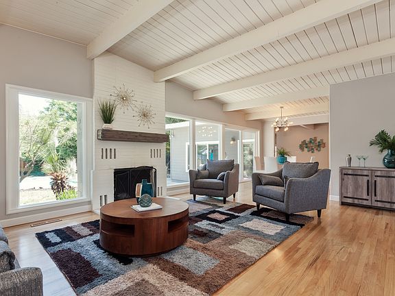 Built in 1954, youâll find this mid-century style home tucked away at the end of a quiet lane. This single-level home has large windows that bring in the outside yet provides a park-like oasis. The open living/dining room has beamed ceilings and a working fireplace with large windows and sliding glass doors. The updated kitchen has new appliances, counters, and tile backsplash plus a farm sink. Off the central living area is a large family room with easy access to the large backyard. The master bedroom has an en-suite bathroom and a large walk-in closet. The other two bedrooms are bright and look out to a soothing tree view. The house wraps around the pool and patio making this a perfect indoor-outdoor living space. The large, treed backyard has lots of privacy and a beautiful pool to enjoy on those warm summer days. There are also a few play structures and sandbox. Great schools, close to BART, Downtown shops and restaurants and Freeway. Open Sat-Sun 2-4:30.