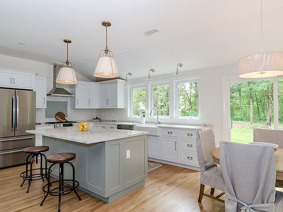 Fresh and fabulous defines this thoroughly renovated home by a builder with an eye for design. The floor plan is open, bright and airy and includes a sparkling new kitchen anchored by a stunning center island and flanked by crisp new cabinets, a farmer's sink and stainless steel appliances. It opens to a fireplaced family room with a tall shiplap mantle and gorgeous hardwood floors. The master is stunning with a cathedral ceiling, walkin closet and master bath. Each bath boasts tasteful tiles and décor with a transitional vibe. The walk out lower level is more living space with a family room and a bedroom that could also be used as a study. There is also a well designed full bath, mudroom and laundry space. The expansive mahogany deck is a perfect space for outdoor entertaining and overlooks the level and private yard. All systems and septic are new. Located a short walk to the Alpine Road Playground and fields, this is a rare and special opportunity.