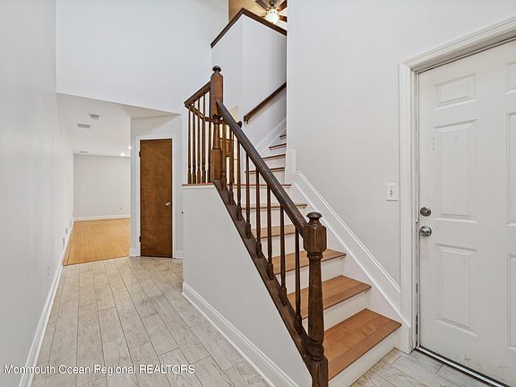 Rare find in the meticulously maintained Pattenwoods. This two-bedroom, two-and-a-half-bathroom townhome features an abundance of natural light upon entering. The foyer has a half bathroom, private entry to the garage, and wood plank tile leading you into the custom kitchen. This kitchen boasts soft-close cabinets/ drawers and puck lighting: Granite countertops, subway-tiled backsplash, recessed lighting, and a deep, single-bowl sink are just a few highlights. The living room and rest of the home have hardwood floors throughout. Built-in surround sound in the living room, fireplace, and large sliding glass doors provide an inviting and uplifting atmosphere. The master bedroom features a walk-in closet and sliding glass doors leading to the newly replaced deck. Washer and dryer upstairs. Pattenwoods is close to shopping, free beaches, restaurants, NJ Transit and the Seastreak. New roof, siding, lighting and components on the entire outside of the home have been completed in the past month.