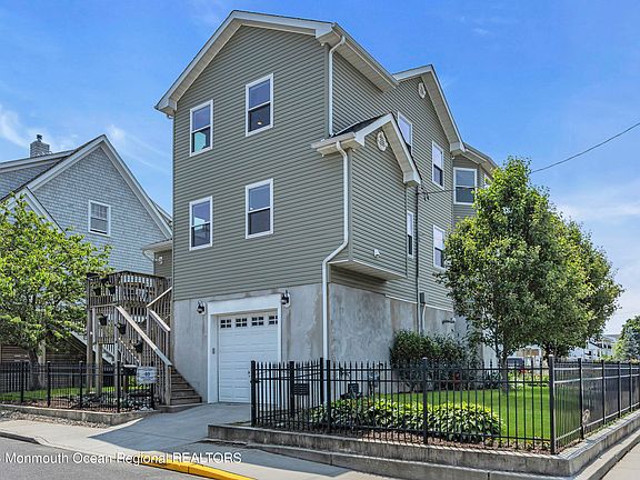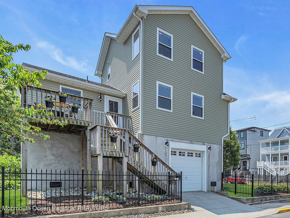 All about coastal living with this beautiful home. Wake up to water views and ocean breezes. This natural light filled home features a large eat-in kitchen with stainless steel Bosch appliances and stone counter tops. Step out of the kitchen onto a large deck for entertaining with water views, overlooking fully fenced yard and watch the boats sailing by. Third floor has master bedroom with private deck, full master bath, private sitting area, lots of closet space and loft area. All with water views. Home is reasonably priced , located on a corner lot with sprinkler system, bright green lawn and garden on one of the most beautiful streets in Highlands. Walking distance to restaurants, transportation , parks. NYC high speed ferry right in town!