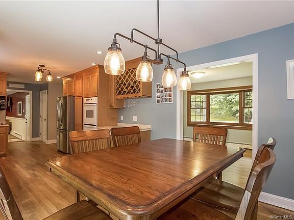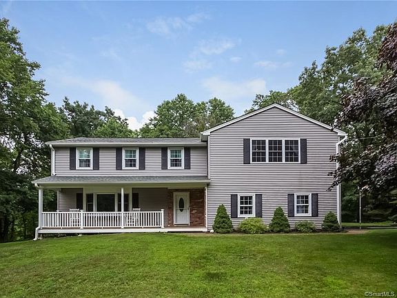 Call Pat Blanko 203-206-9194! Beautiful neighborhood setting! **FOUR** Bedroom Colonial with Farmers front porch on 1.10 acres includes an expansive master bedroom addition! Living room with hardwood floors and bow window; dining room with sliders to the deck and opens to the kitchen with HW floors, cooktop and double wall ovens. The family room with a floor to ceiling raised hearth brick fireplace also offers access to the deck. Large master bedroom suite includes a walk in closet, full bath featuring double sink vanity and walk in tile shower with rain head. Three additional bedrooms with hardwood floors and second bedroom has walk in closet and access to full bath! Second floor office and laundry! Walk out lower level recreation room adds over 400 sq ft. Newer furnace, and water system (neutralizer, softener and tank), newer light fixtures, electric awning over deck, attached two car garage, shed. Convenient Oxford location! Call Pat Blanko 203-206-9194!