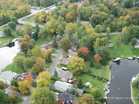 Wonderful Waterfront Custom Built Home With Garage & Private Boat Slip Allowing Access To Lake Simcoe & Beyond. This Impressive 2 Bedroom 2 Bathroom Offers Bright Open Concept & Vaulted Ceilings With Large Windows. Modern Kitchen Has Built-in Appliances & Walk-out To Deck. Beautiful Living Room Has Gas Fireplace & Walk-out To Water Side Deck. Lagoon City Is An Active Year Round Community With Onsite Marina, Tennis/Pickleball, Restaurants, Private Park & Sandy Beach On Lake Simcoe. Home Offers Propane Gas Furnace & Central Air. Mature Gardens & Landscaping, Beautiful Hedges & Paved Driveway. **EXTRAS** Home Offers Ceramic & Hardwood Floors, Most Furnishings Available. Home Is Great For Entertaining Family & Friends. Now Is Your Chance To Be Apart Of A Great Waterfront Lifestyle.