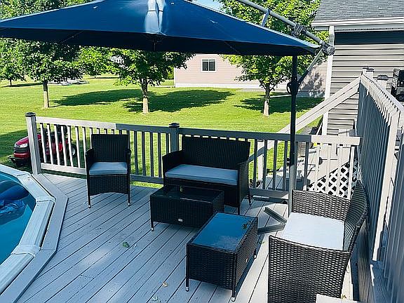 27 ft round well maintained swimming pool with new liner. Freshly landscaped and new mulch. Freshly stained deck and new light fixtures. Newly remodeled kitchen. Breezeway and garage was built in 2017 along with a new roof, siding and windows installed. Yard is a little over a half acre with privacy in the backyard. This is a must see! Garage is 26’ wide by 40’ deep. Tons of storage space with built in work bench.
