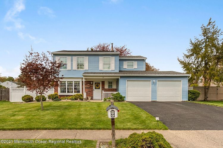 Meticulously Maintained 4 BR colonial in Central Howell. The lovely front porch welcomes you into this immaculate home with wood flooring and decorative moldings throughout, granite countertops and tile backsplash in the kitchen, first floor laundry, LR, DR, and Den or home office. Center hall stairs leads you to 4 Large bedrooms, master has ensuite and walk in closet. Spend this summer in the fenced in yard, bbqing on the lovely blue stone patio. Included shed, generator.